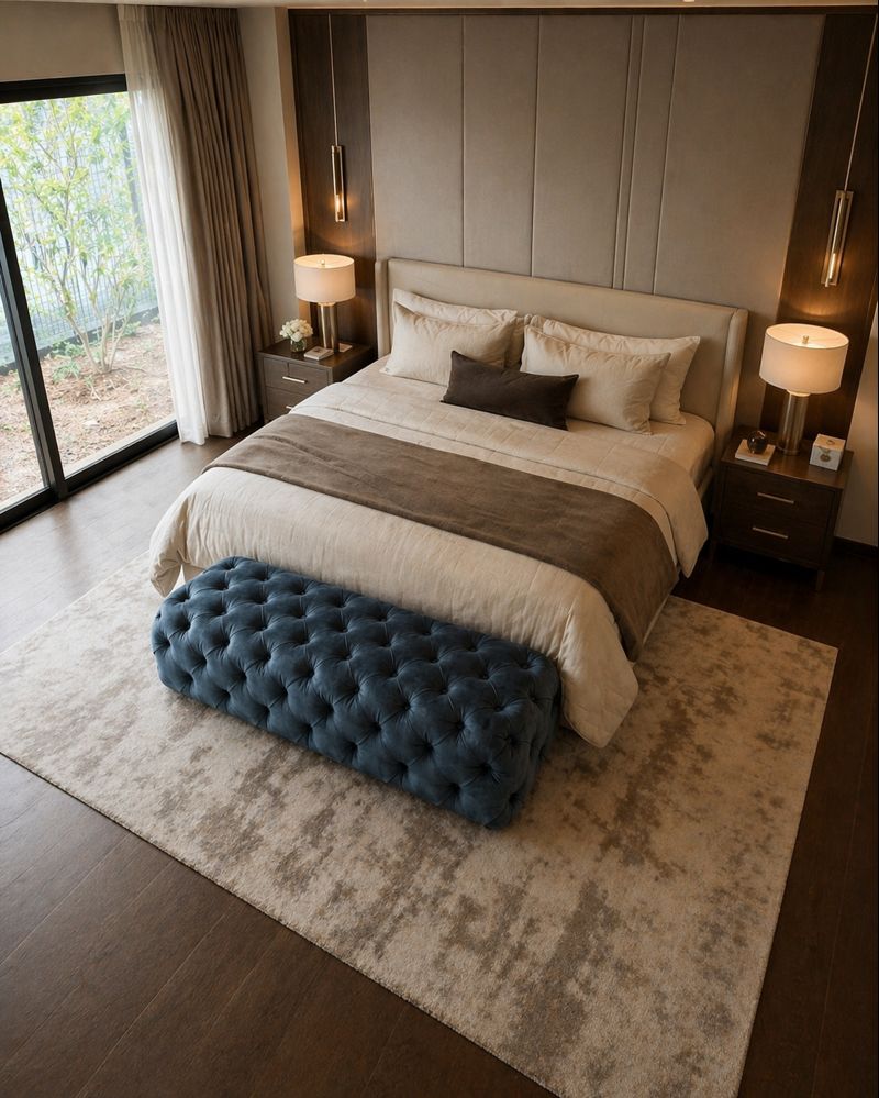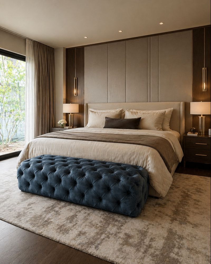 ・ベッドルームの足元にふさわしい、上質なフットベンチを設えたい